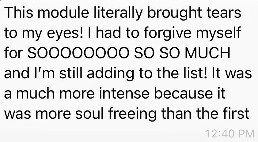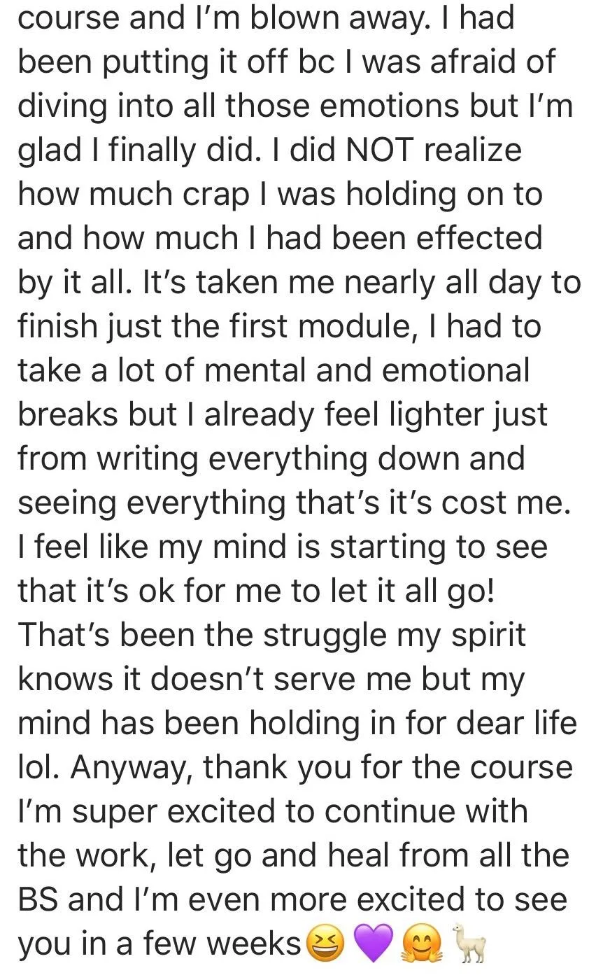 It's always a bit scary doing this work but nothing is scarier then staying stuck in the same stagnant cycles that brought you to this page in the first place. It's scary but so, so worth it! I also make this work less overwhelming by sharing my own personal experiences with you inside of the course - making it way less heavy and more fun!